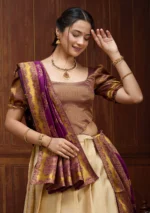 Step into a world of timeless charm with the Banarasi Cream Lehenga, where traditional meets trendy! Crafted from luxurious Banarasi fabric, this exquisite piece promises a smooth feel and glamorous sheen. Perfect for making a grand entrance at any evening event, this lehenga captivates with its plain, majestic elegance and an air of regal simplicity.