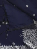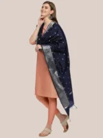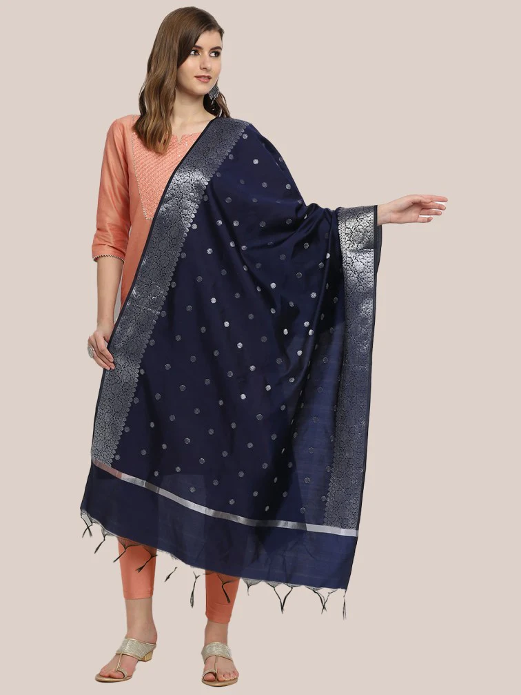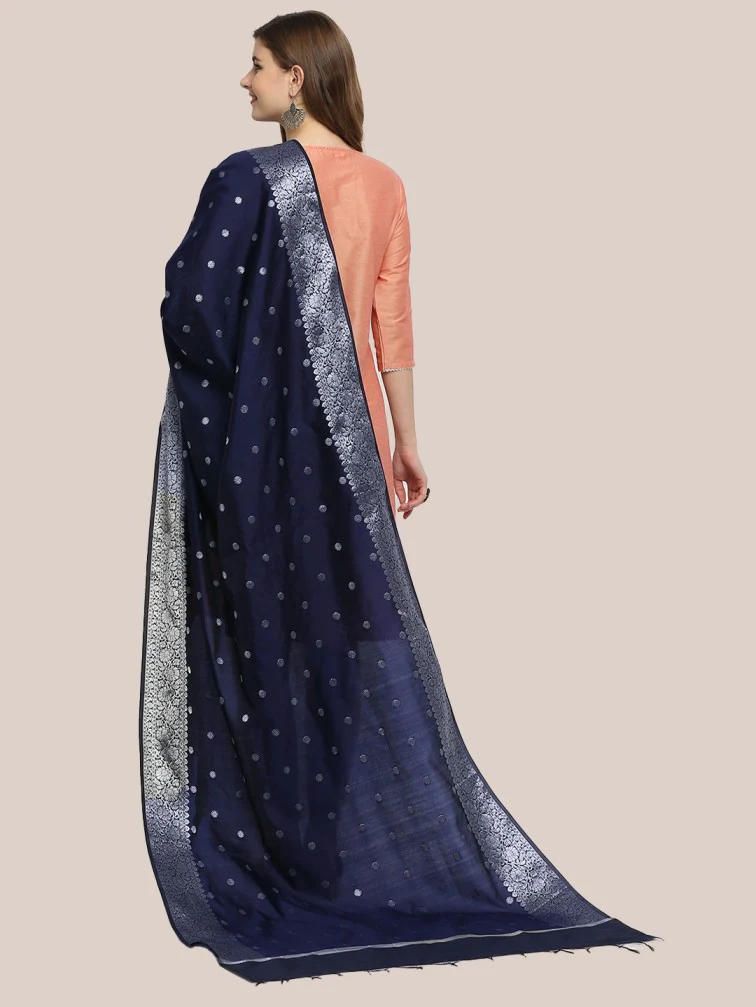 • This Fine Banarasi  dupatta is adorned with beautiful woven motifs along with rich silver zari border.
