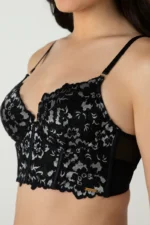 BLACK Femme Lace Padded Non-Wired Longline Bra