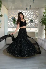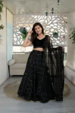 Home Lehenga Black Organza Lehenga With Velvet Blouse