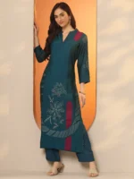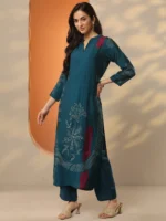 Blue Printed Silk Blend Straight Kurta