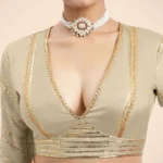 Cream Elbow Sleeves FlexiFi Saree Blouse