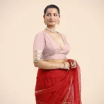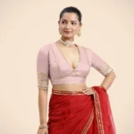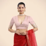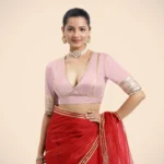 Home Blouse Half-Sleeve Blouse Elbow Sleeves Baby Pink FlexiFi Gota Embellished Saree Blouse with Plunging V-Neck