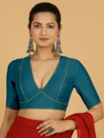 Erum x Rozaana | Elbow Sleeves Saree Blouse in Crystal Teal