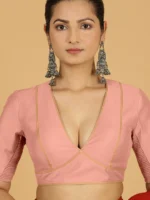 Erum x Rozaana | Elbow Sleeves Saree Blouse in Sea Pink
