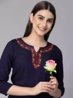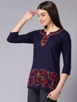 Blue Kashmiri Silk Work Short Kurti