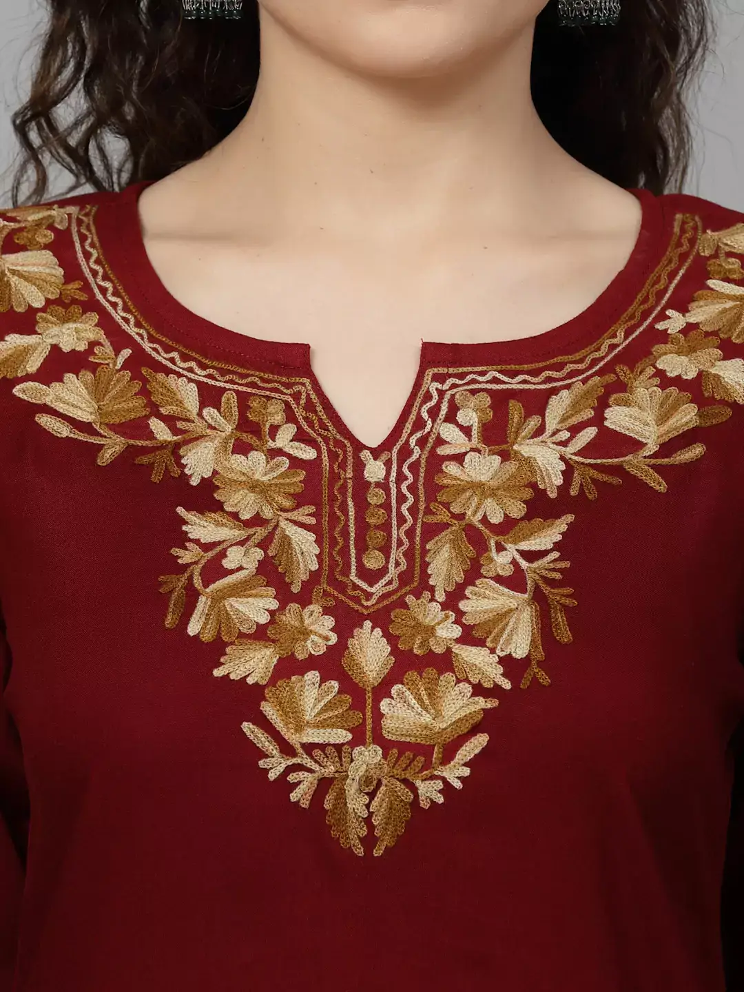 Wine Silk Embroidered Kashmiri Kurti