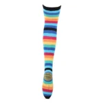 - Rainbow Striped Design: These socks feature striking rainbow stripes that add a fun and vibrant touch to your outfit.