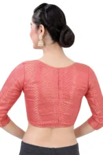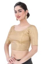 pgrade your ethnic wardrobe with our readymade saree blouse, also available as a custom-made piece, featuring a sophisticated high neck design in luxurious raw silk fabric. This long-sleeve blouse embodies the latest trends in Indian ethnic wear and can be tailored as a stylish custom crop top.