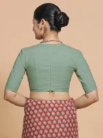 Malika x Rozaana | Deep Neck Saree Blouse in Peppermint Green Linen