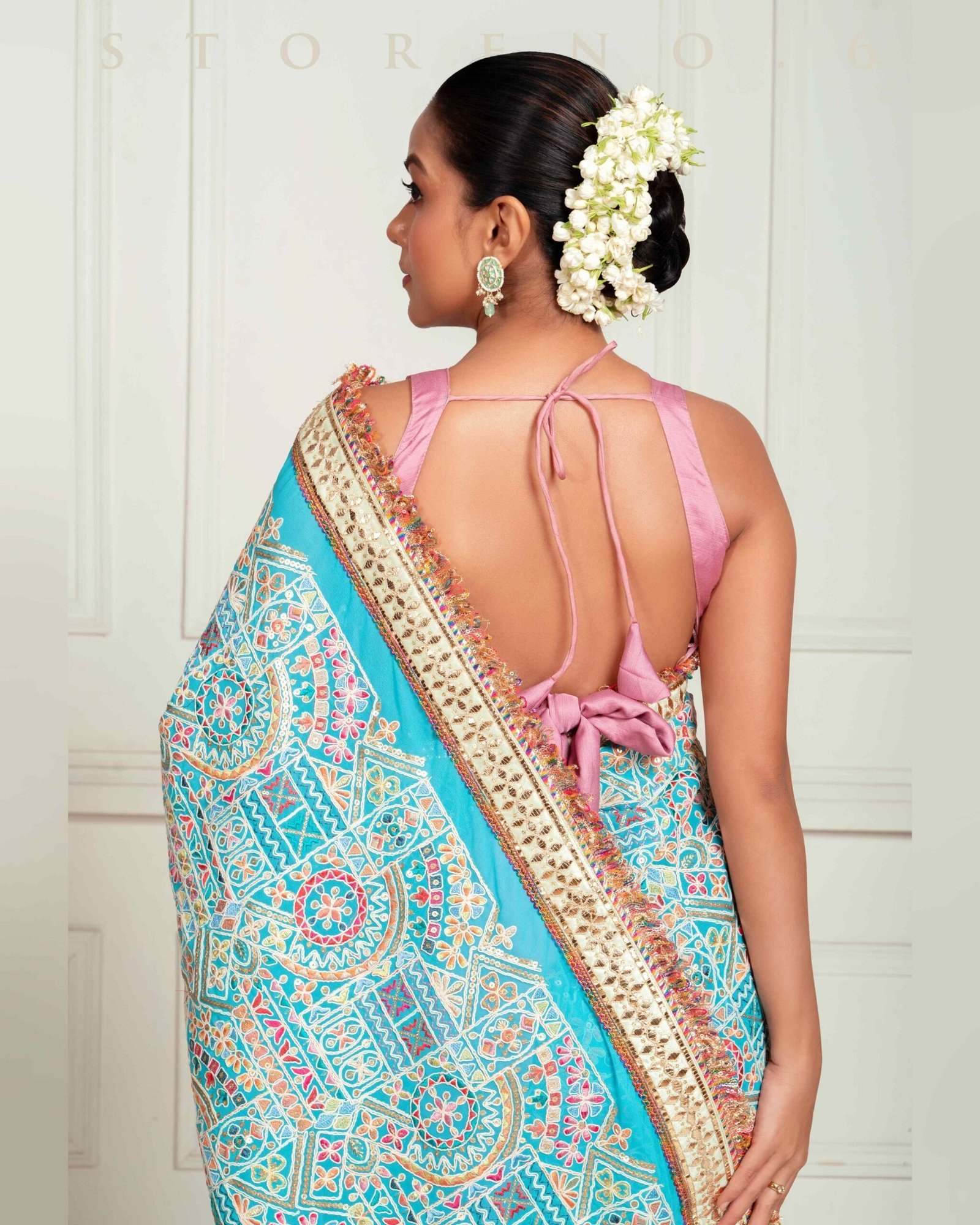 Erum x Rozaana | Elbow Sleeves Saree Blouse in Sea Pink