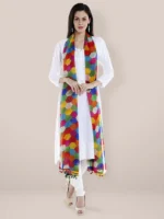 • The choice of happy colours and a perfect mix with multicoloured pom pom makes this soft dupatta simply irresistible!