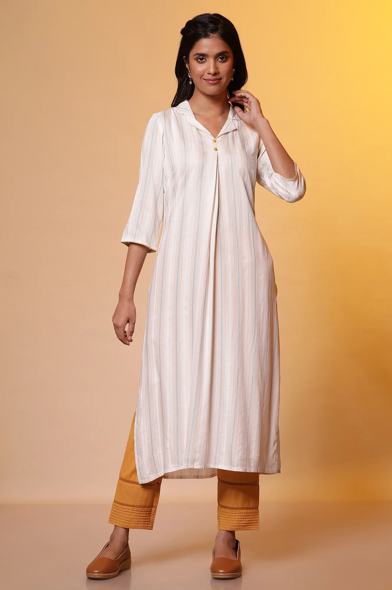 Co-ord set for women in airy white seer sucker fabric, this variation offers the same blend of elegance and comfort with a distinct finish. The kurta, designed with a modern silhouette, is paired with matching pants for a clean and minimal look. Ideal for casual outings, festive brunches, or small family gatherings, it is versatile and lightweight. The breathable texture of seer sucker ensures all-day comfort, especially in warm weather. Its timeless white shade allows for endless accessorizing, whether with bold jewelry or subtle accents. This co-ord set is a wardrobe staple that balances simplicity with elegance, making it perfect for women who love modern ethnic dressing.