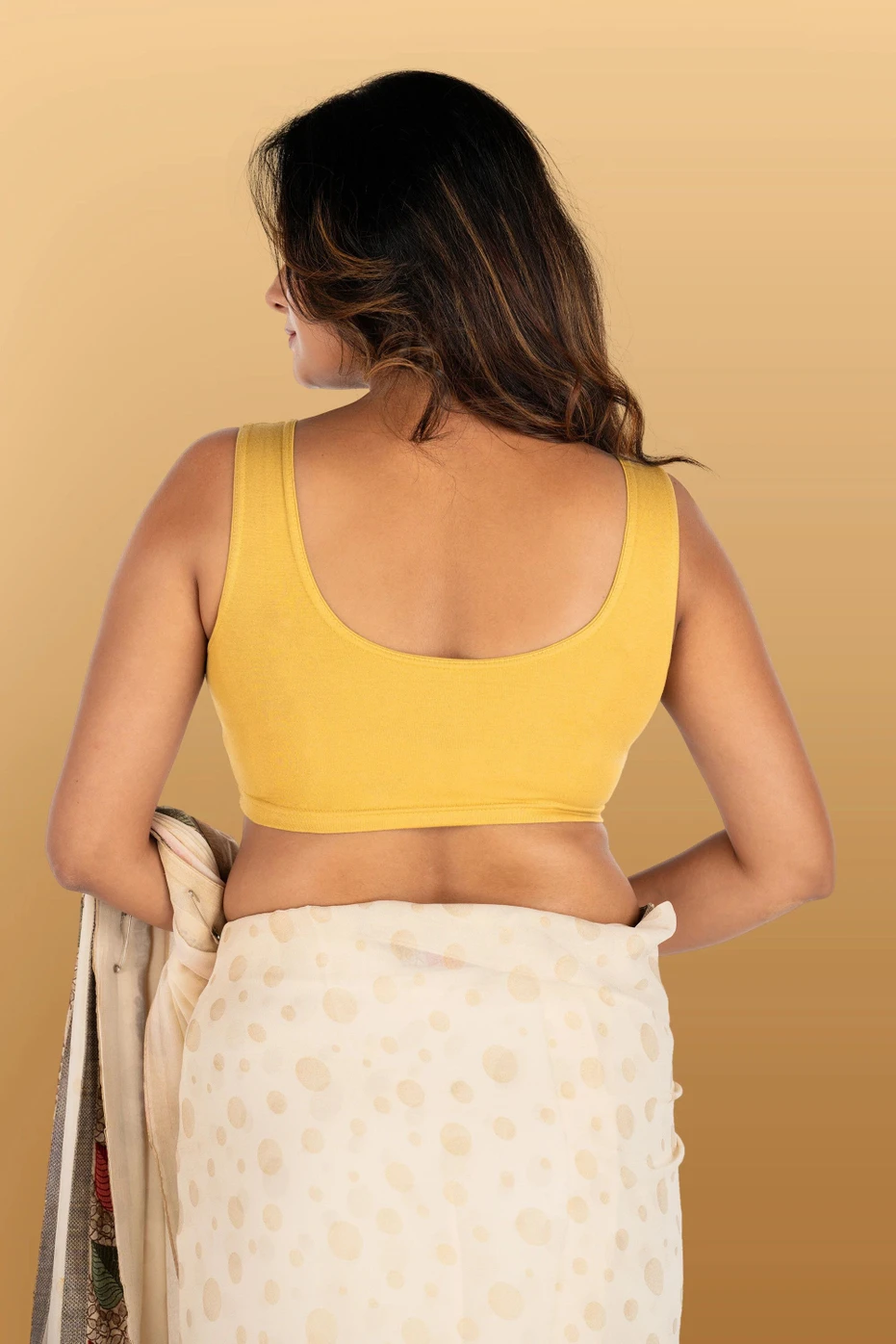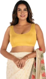 Home Blouse Sleeveless Blouse Mustard Yellow U-Neck Women Blouse