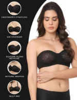 - Non-padded, wired strapless bra