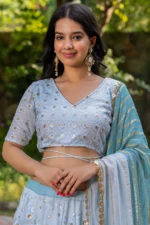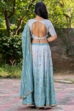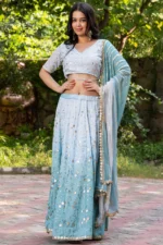Ocean Blue Georgette Embellished Kalidar Lehenga Set