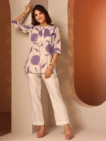 Off White Printed Cotton Straight Short Kurti