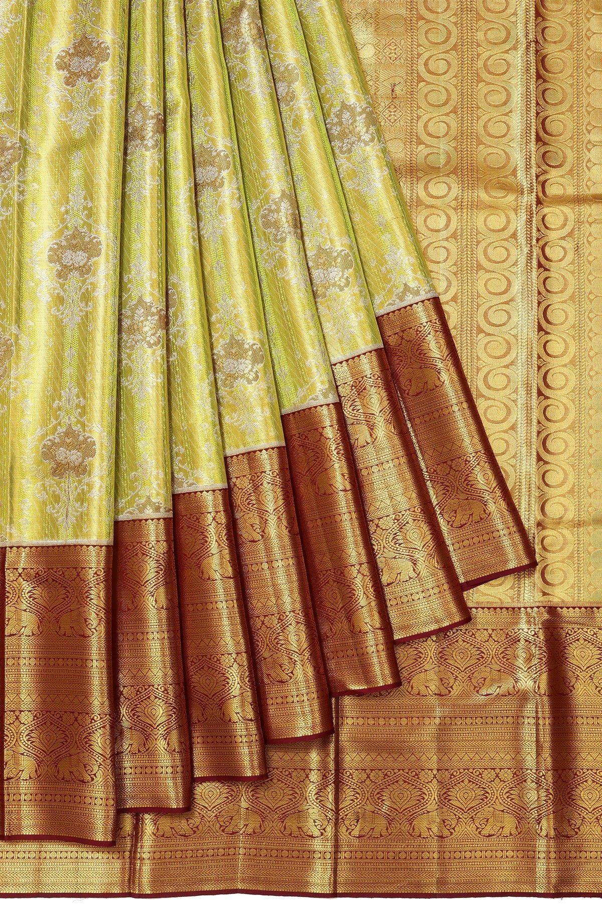 Home Saree Occasions Wedding Sarees Parrot Green Kanchipuram Tissue Silk Saree