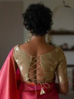 Ahana x Tyohaar | Rani Pink Sleeveless FlexiFi Saree Blouse with Plunging Neckline and Back Cut Out with Tasteful Golden Gota Lace Embellishment