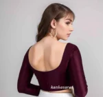 Upgrade your ethnic wardrobe with our readymade saree blouse, also available as a custom-made piece, featuring a sophisticated high neck design in luxurious raw silk fabric. This long-sleeve blouse embodies the latest trends in Indian ethnic wear and can be tailored as a stylish custom crop top.