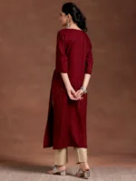 Home Kurtis Long Kurtis Red Woven Design Rayon Straight Kurta