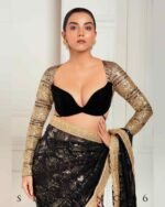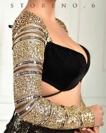 Half And Half Full Sleeve Blouse With Zari nd Sequins Embroidered Black Net and Velvet.