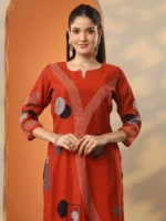 Rust Printed Silk Blend Straight Kurta