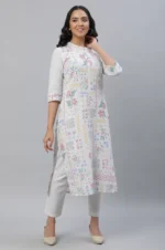 Co-ord set for women in airy white seer sucker fabric, this variation offers the same blend of elegance and comfort with a distinct finish. The kurta, designed with a modern silhouette, is paired with matching pants for a clean and minimal look. Ideal for casual outings, festive brunches, or small family gatherings, it is versatile and lightweight. The breathable texture of seer sucker ensures all-day comfort, especially in warm weather. Its timeless white shade allows for endless accessorizing, whether with bold jewelry or subtle accents. This co-ord set is a wardrobe staple that balances simplicity with elegance, making it perfect for women who love modern ethnic dressing.