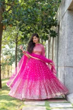- Elegant Rani Pink Net Lehenga with Can-Can