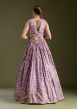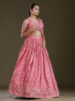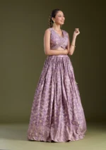 Onion Pink and  Dark Lavender Readymade Lehenga in Soft Raw Silk fabric. The Lehenga is embellished with sequin embroidery. Accompanied by a Readymade blouse and dupatta. Comes with the Koskii promise of premium quality.