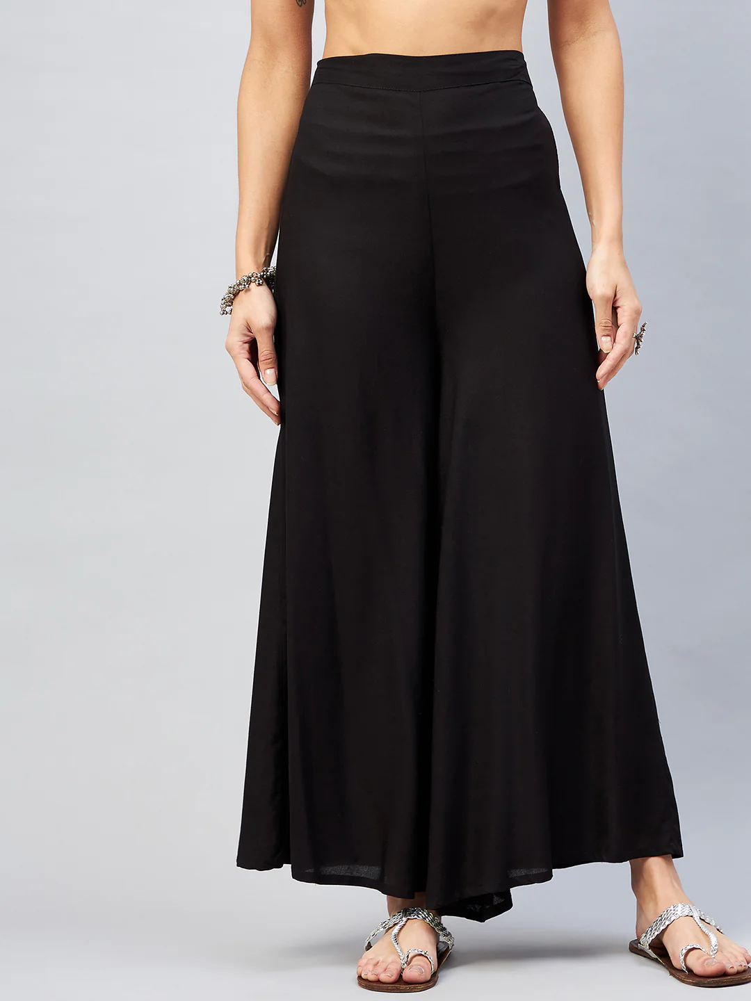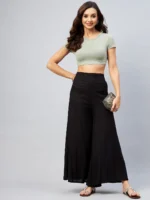 Viscose Rayon Solid Black Handloom Palazzo