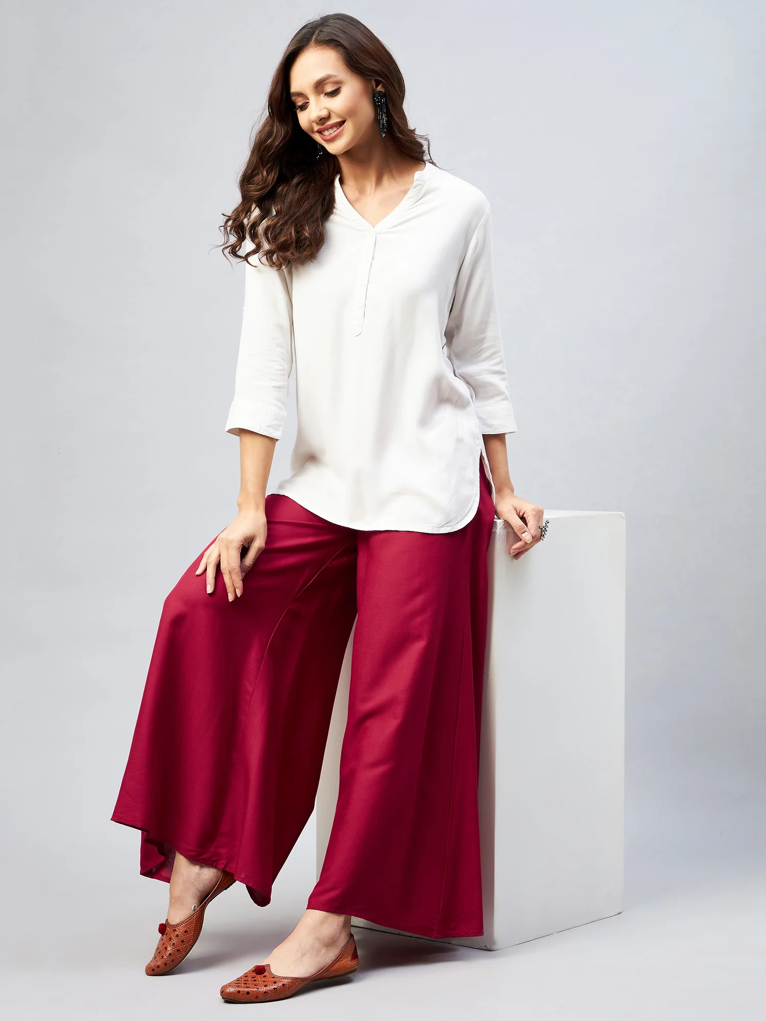 Viscose Rayon Solid Maroon Handloom Palazzo