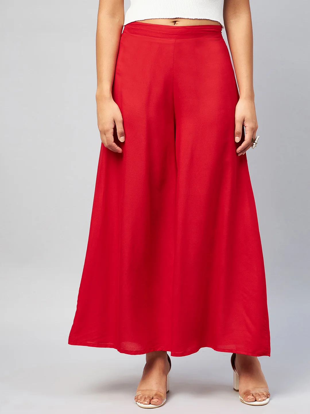 Home Palazzos & Pants Palazzos Viscose Rayon Solid Red Handloom Palazzo