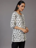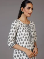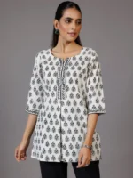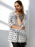 Navy Blue Yoke Design Rayon Straight Short Kurti