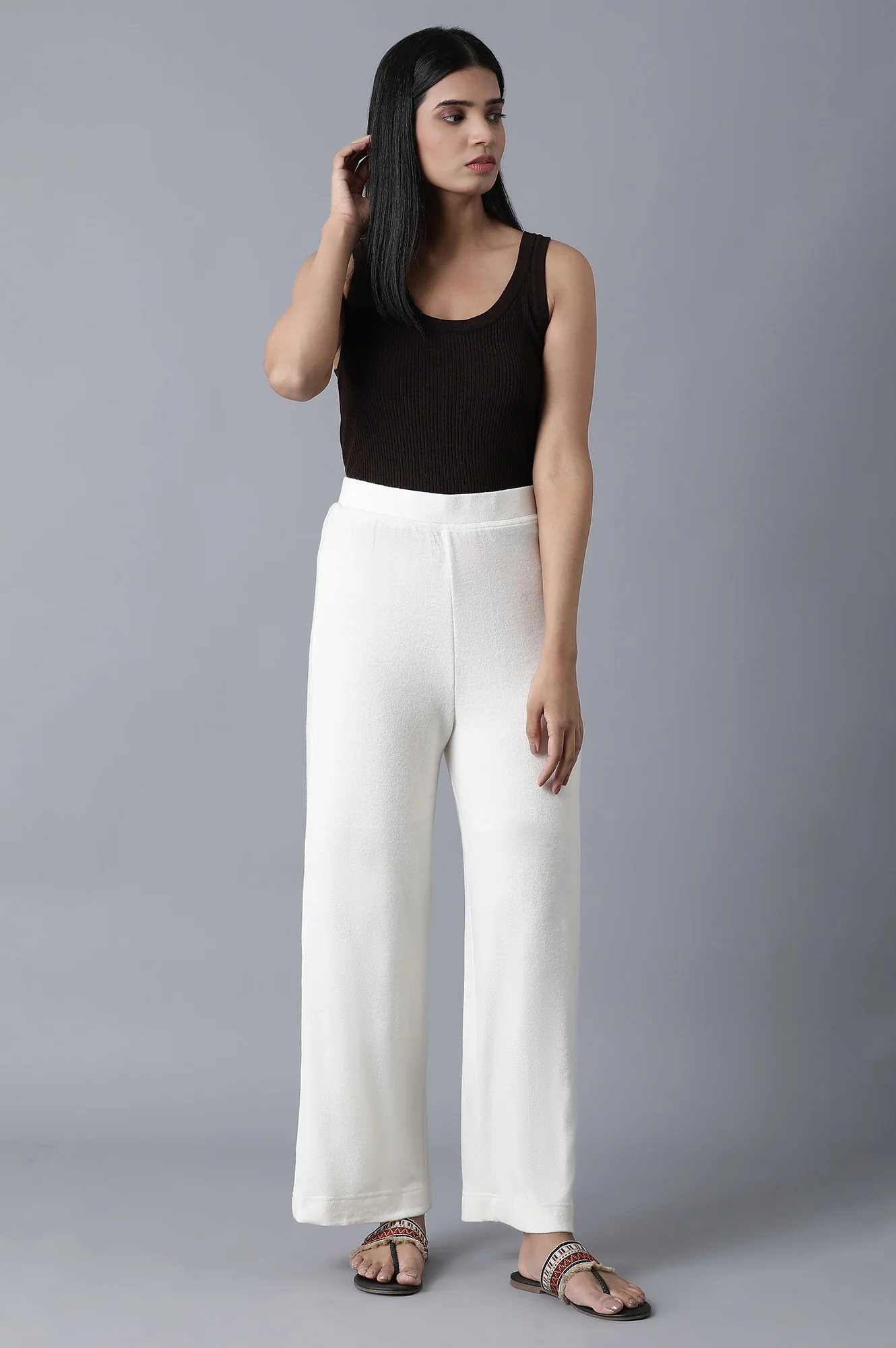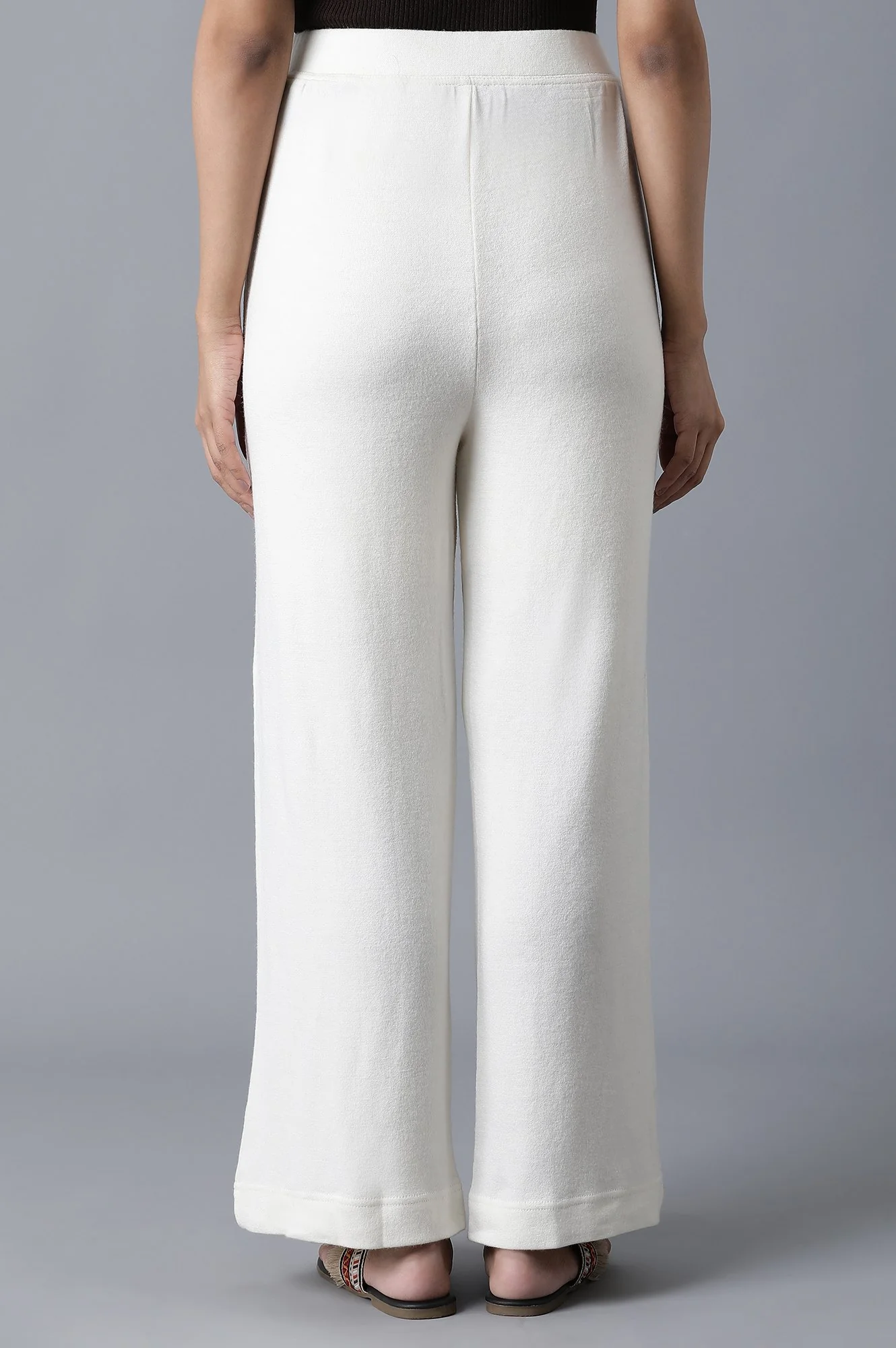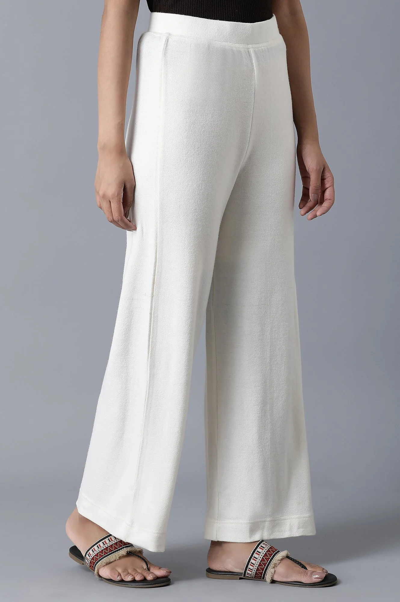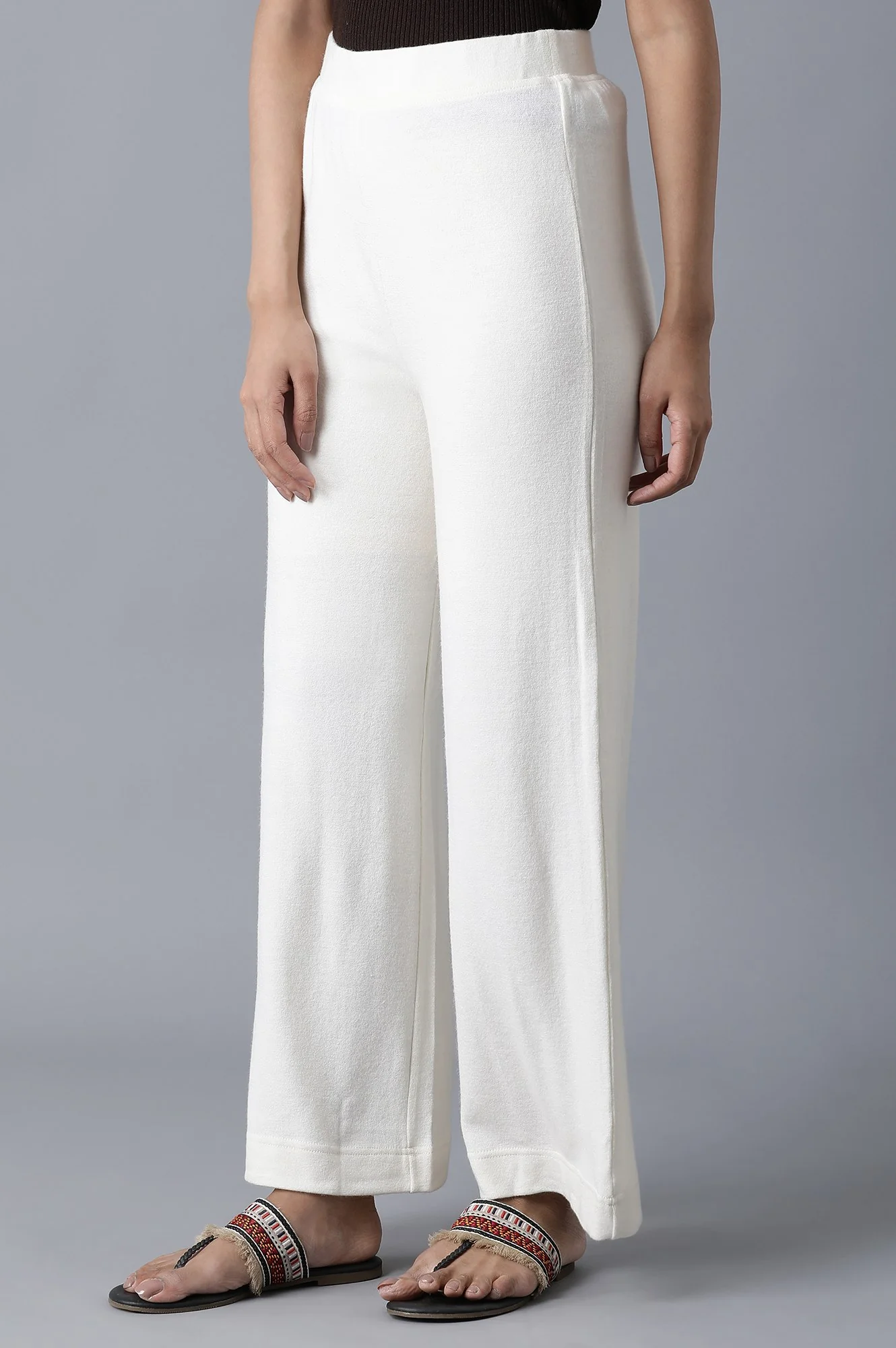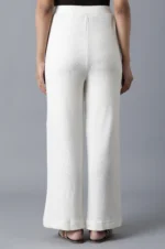 White Solid Straight Fit Palazzo With Elasticated Waistband