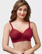 Home Bra Non Padded Bra Wine Red Moulded Feather Non Padded Full Coverage Women Bra