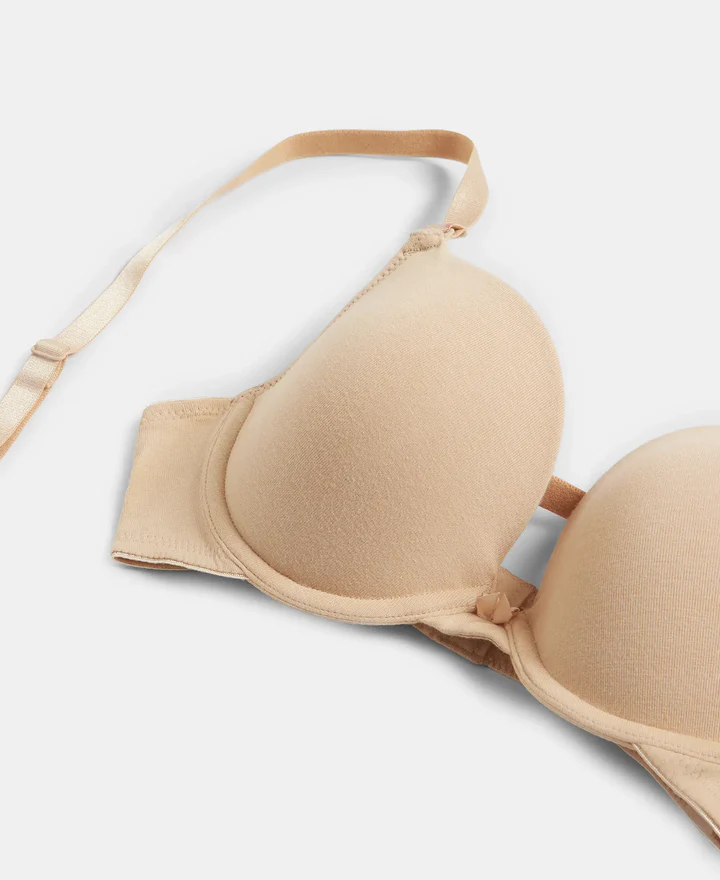 Wired Padded Super Combed Cotton Elastane Stretch Medium Coverage Pushup Bra with Plunge Neck