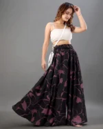Women Flared Printed Black Viscose Rayon Palazzos