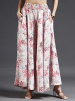 Women Flared Red, Brown, White Viscose Rayon Trousers