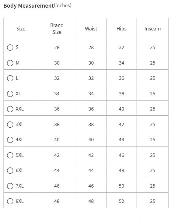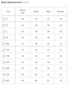 S, M, L, XL, XXL |