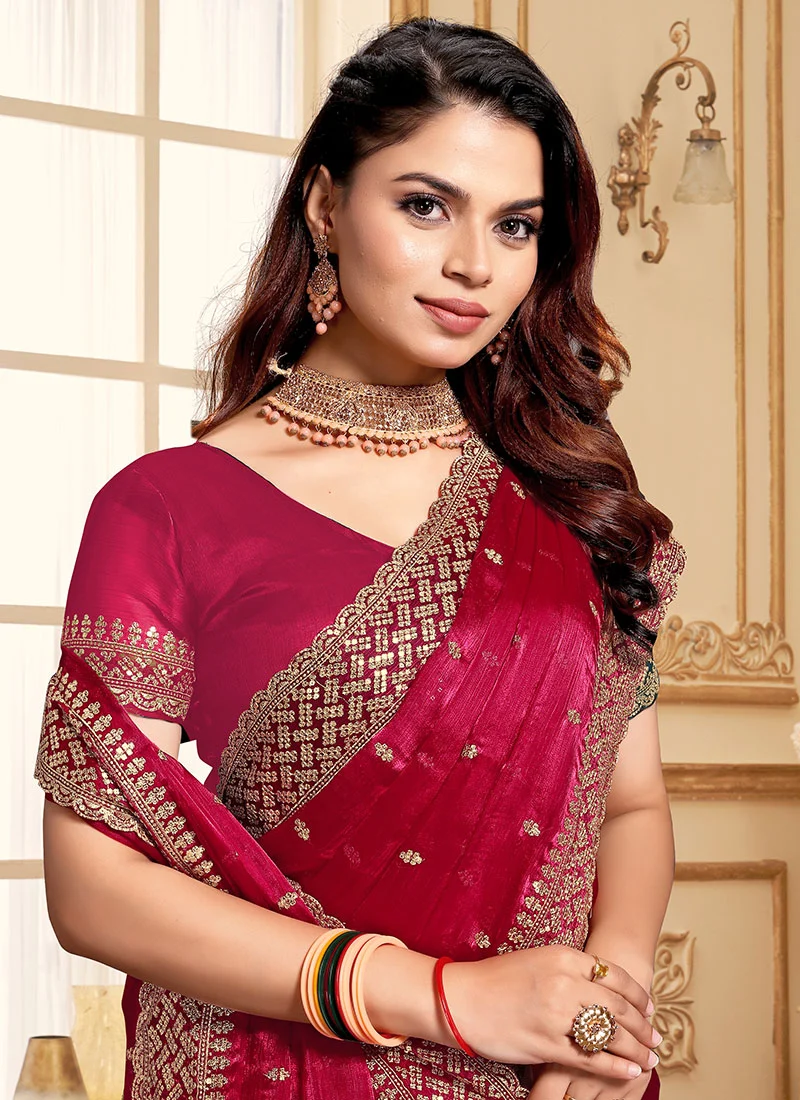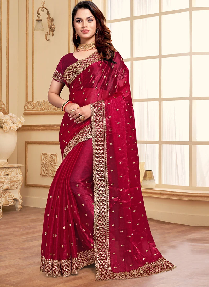 Zari Embroidered Sequins Saree Festive Wear